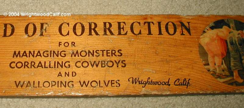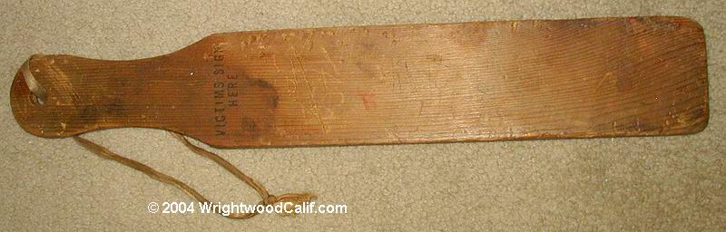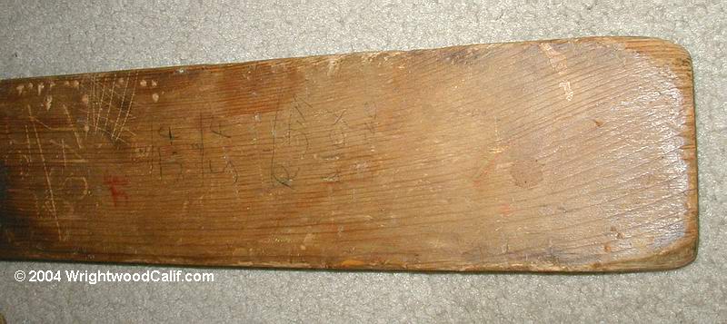 The paddle was recently discovered in an old rental house in Whittier and definitely has some history behind it. The Wrightwood, Calif name has been on it for years and is not something new.