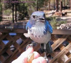 Has anyone successfully tamed the jays to take peanuts out of your hands? When visiting Florida last summer I was delighted to see my parents do just that with their local scrub jays. I would like to replicate that same experience here at home.