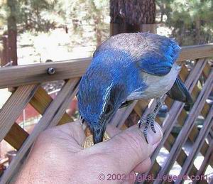 In terms of feeding the birds, Mountain Hardware carries bird seed and feeders of various kinds.  Suet feeders are great for attracting all kinds of birds that don't come to regular seed feeders--I get Western Bluebirds, Northern Flickers, Nutall's Woodpeckers, Acorn Woodpeckers, and of course Pygmy and White Breasted Nuthatches at my suet feeder.  Once the Flickers start in, the suet cakes don't last long, but it's worth it to see these giant birds right outside my window hanging on the little suet feeder!  I'll have to try and get some photos--just got my digital camera and haven't tried taking too many wildlife photos yet!