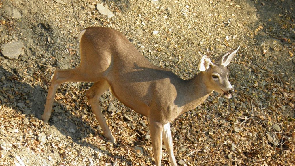 The coyote pup showed up on my patio today.  He seems real young and obviously hungry enough to stand five feet from me.  I felt like if I said "come here" he would have.  Instead I discourage him and told him to beat it.  He went about 10 feet away looked at me again to see if I was changing my mind. I told him to beat it again and he walked off down the hill.