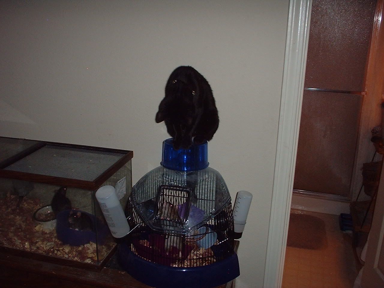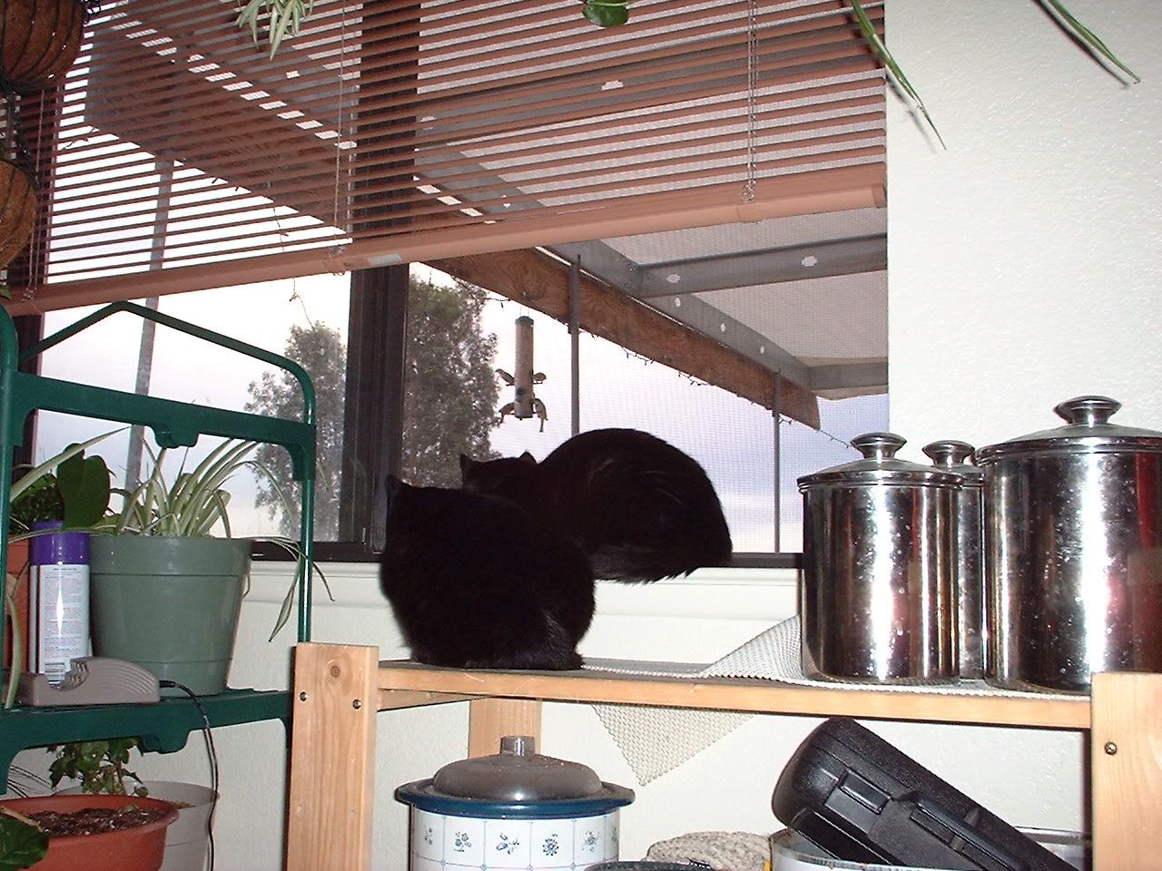 made out of clear plexiglass, that he chooses from...lots of pom poms, milk bottle plastic pullies ('spew's' as we call them), shoe strings, you know, cat treasures, my cats love them.