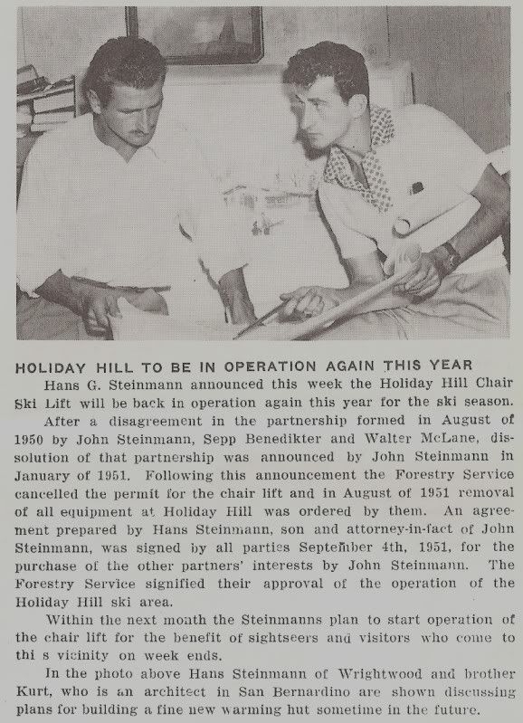 From an old Wrightwood Newspaper called The Wrightwood Bulletin; Ski Season 1952... Holiday Hill continues