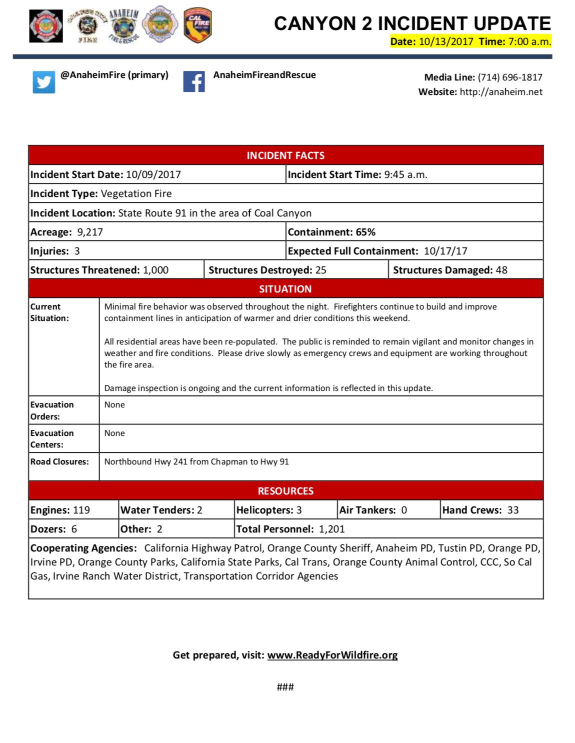 #Canyon2Fire [final] west of Gypsum Canyon (Orange County) is now 100% contained at 9217 acres.