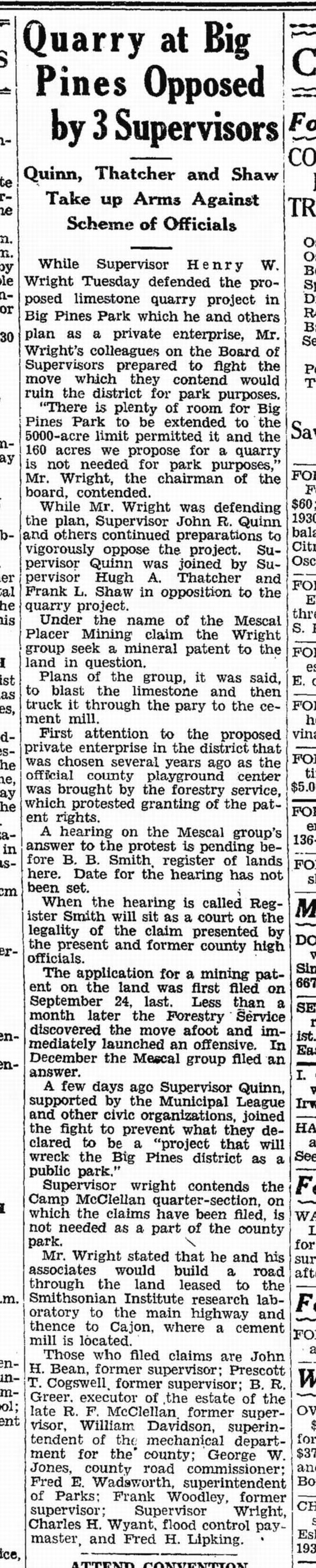 Re: History - Newspaper articles - Big Pines Management