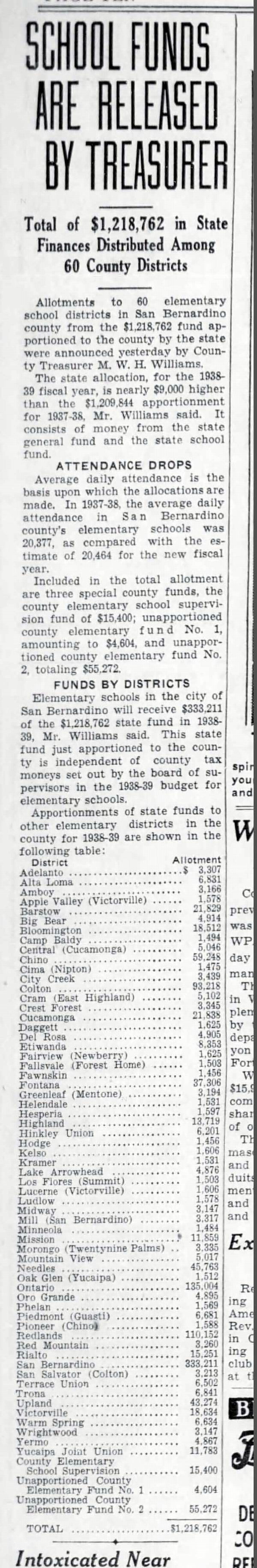 1938 School Funds Are Released By Treasurer