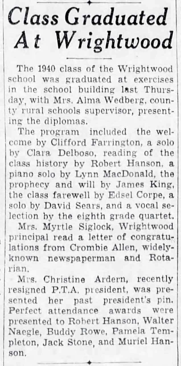 1940 Class Graduated at Wrightwood