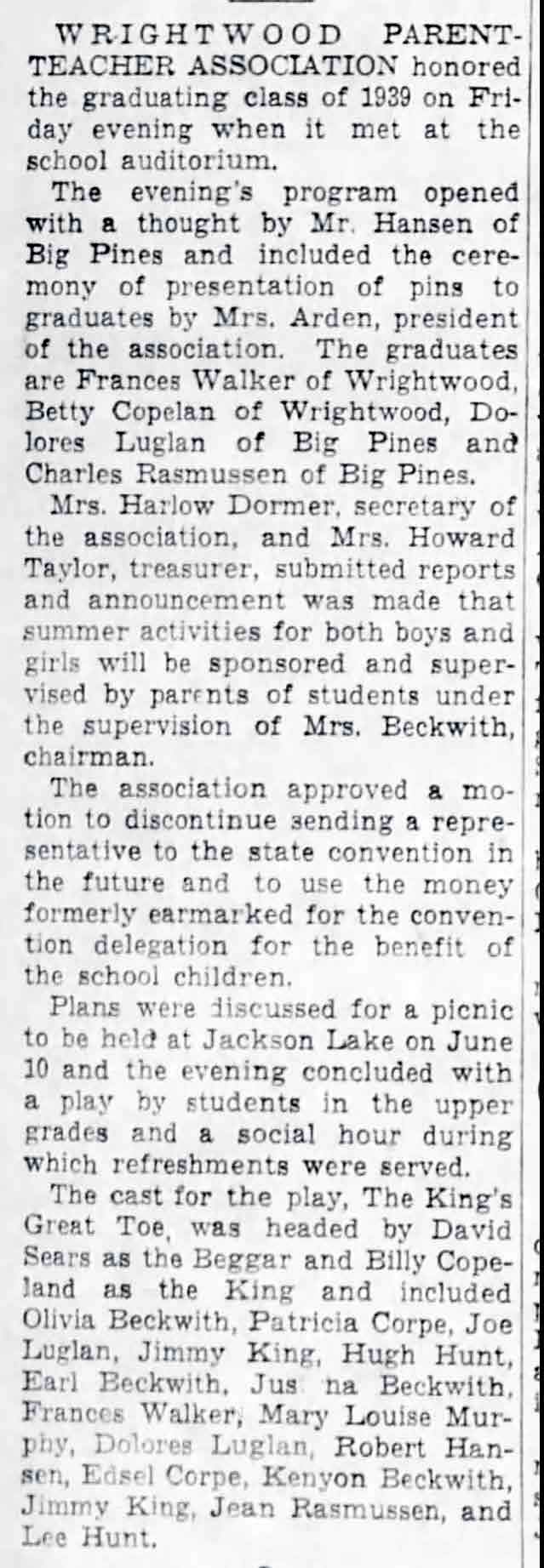 Wrightwood Elementary School 1937 PTA Wrightwood Plans