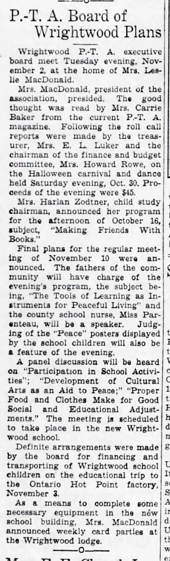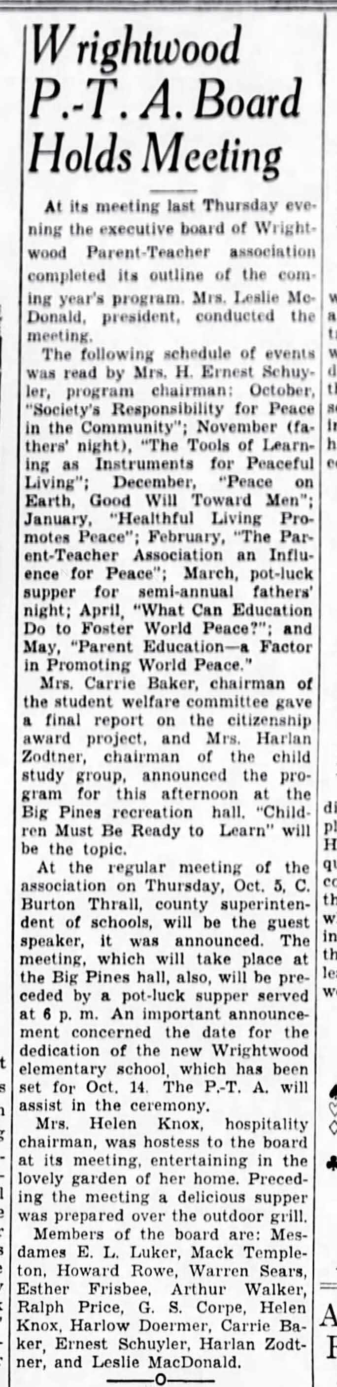 1937 Wrightwood PTA Board Holds Meeting