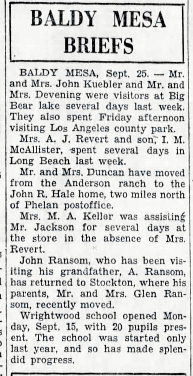 In Sept. 1930, Wrightwood School had 20 students.