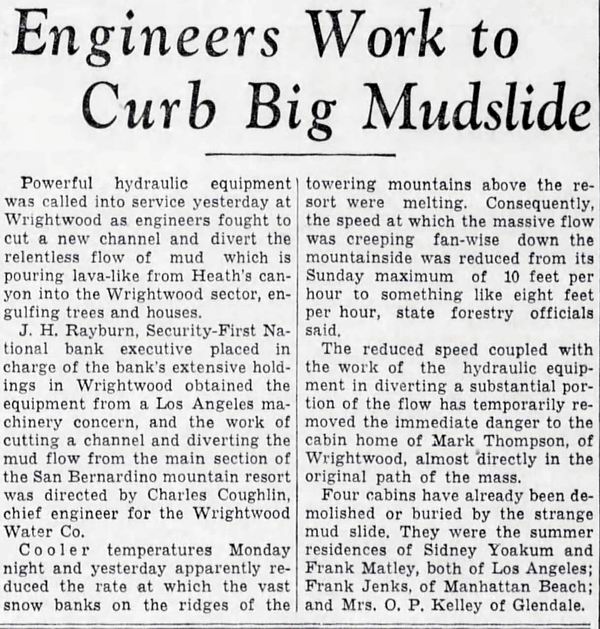 Wrightwood Mud Disasters 1969 - 1941