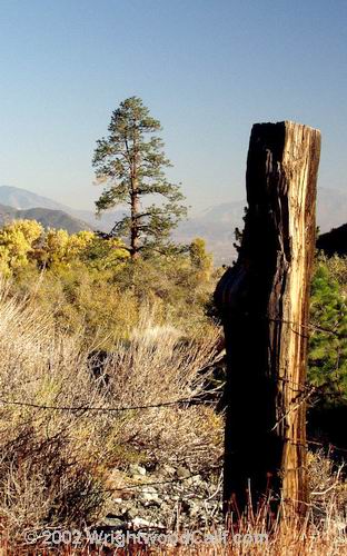 "In 1863 Almon Clyde crossed the ridge from Lytle Creek and filed a claim on the old Swarthout homestead in Lone Pine Canyon. Clyde built a ranch house next to a lone pine tree in mid-canyon (from whence the name Lone Pine Canyon is derived) and planted apple trees."