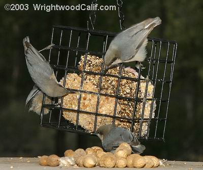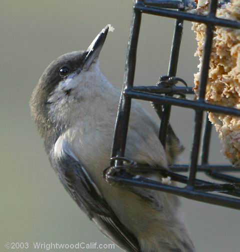 Pygmy Nuthatch visit the ever popular suet feeder.