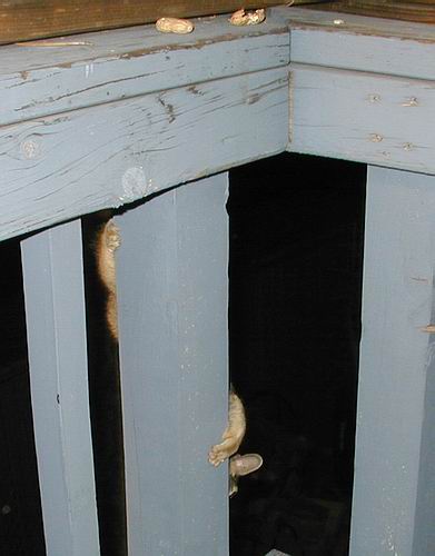 They are very hard to see because they are very shy and mostly nocturnal.  Here's the picture I was thinking of.  It was on "Wrightwood's" porch.  Not a good picture, but he said he did have a tail like that in the next picture: