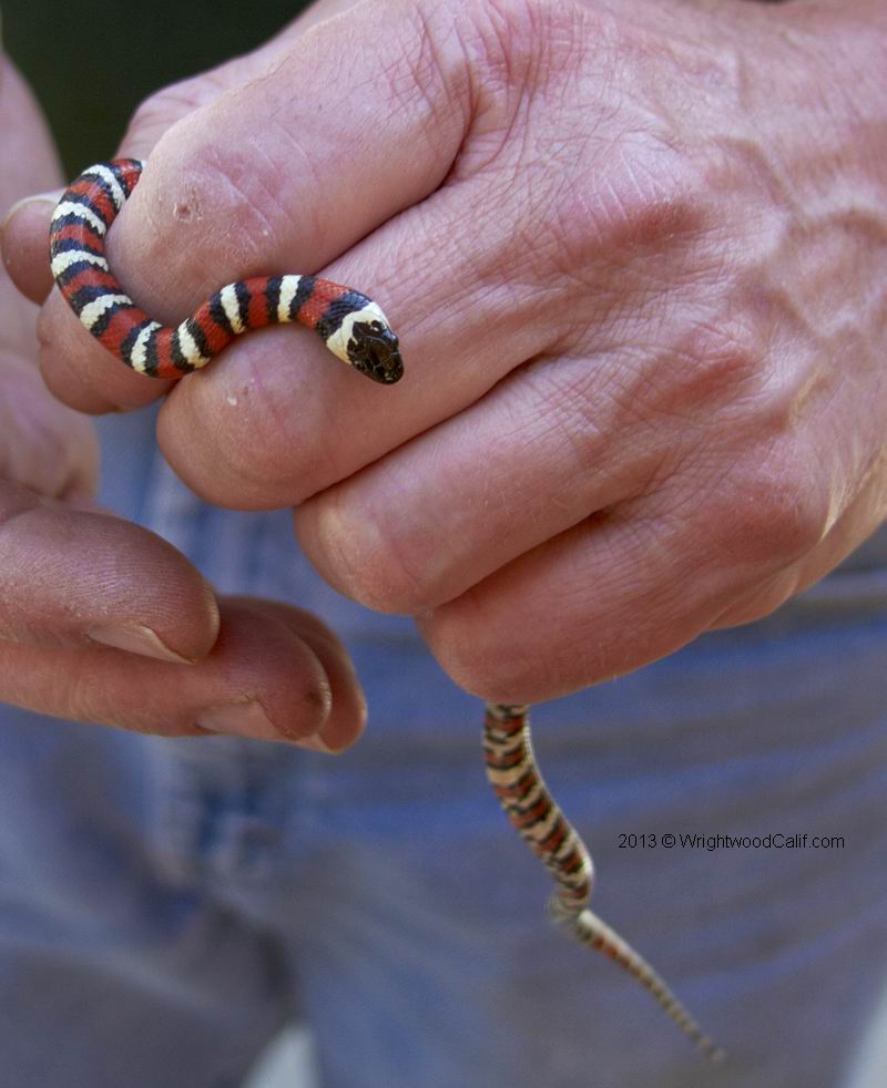 Great pics, Wrightwood!  I don't like snakes and don't think I could pick one up like that, but I do agree that king snakes are beautiful creatures.