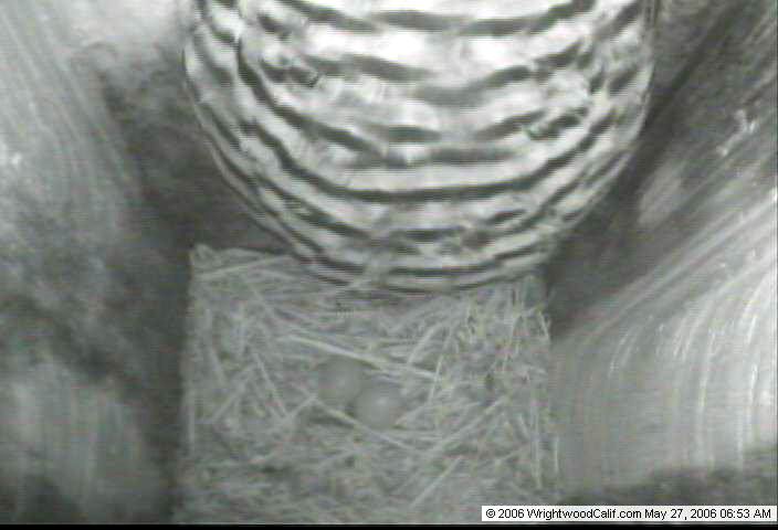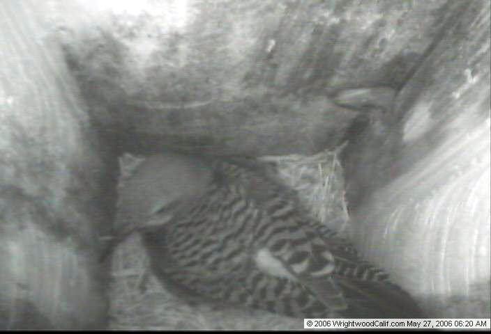Everyone needs to check out the new "Nature Cam" site on the banner above. Wrightwood did an awesome job of having four of the cameras up at one time. I know he put a lot of hours into getting it up and running. Also notice that the flicker nest now has two eggs in it. :2thumbsup: