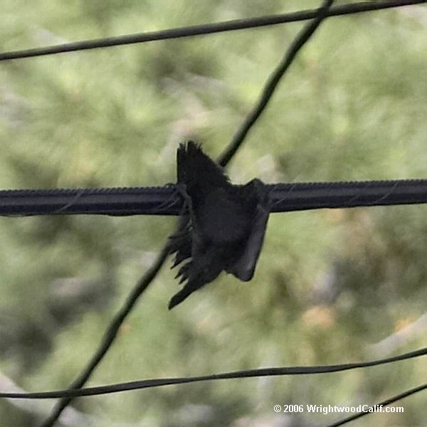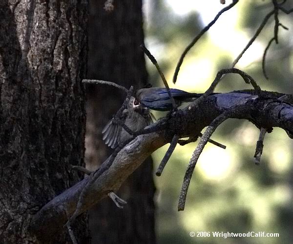 The 1st guy hopped on the roof of the house, made a flight to the telephone line, flew up higher in a large pine tree while mom and dad tried to coax him/her down.