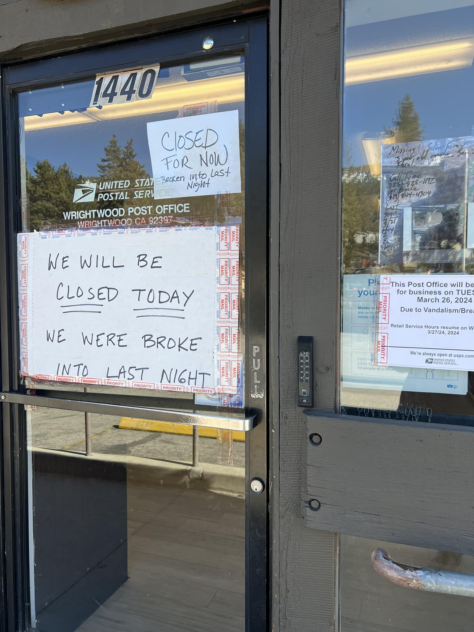 Author Topic: Wrightwood Post Office breakin 3/26/24  (Read 7864 times)