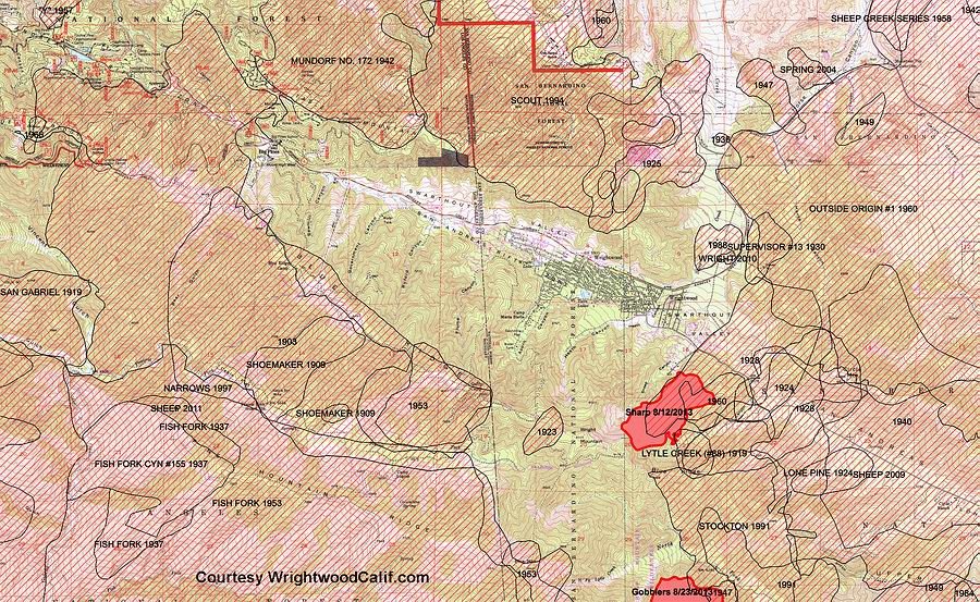 People say that fire has never been in Wrightwood proper but it has. I've seen several giant Cedars that had "Cat Eyes" burned into their bases which could have only happened with fire on the ground. Sadly, the two trees I used to share with folks were cut down over the past 45 years.