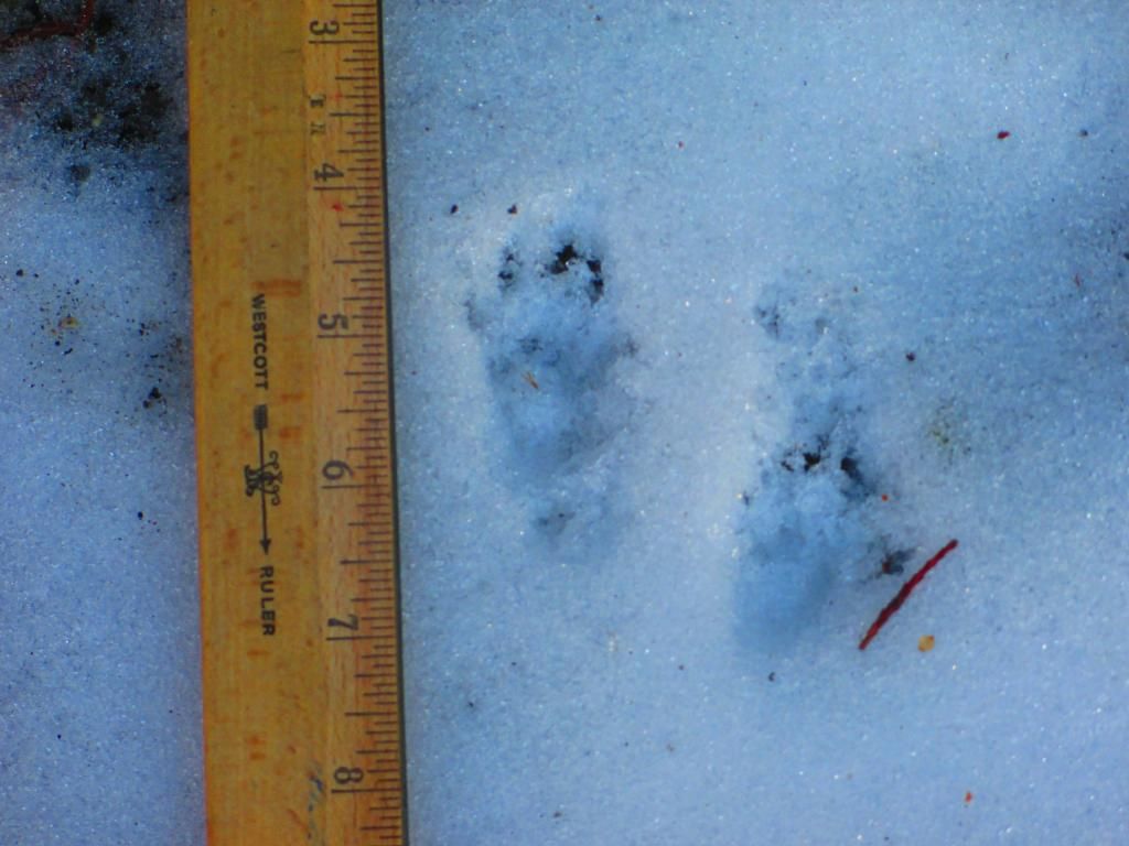 My friends are certain that they have seen a brown Mink around lately and today I asked them if it could have been a Pine Martin or Ring Tailed Cat.  My friend quickly pulled out his iPhone and looked up the other species on Google and was very certain that it was the Mink.  He even mentioned to me that he saw the Mink on his way to work today and the critter ran under my front poach.  When I got home from work I looked in the snow and found these animal tracks that appear to be Mink.  I compared the tracks to the Pine Martin and Gray Squirrel and they match closest to a Mink.
