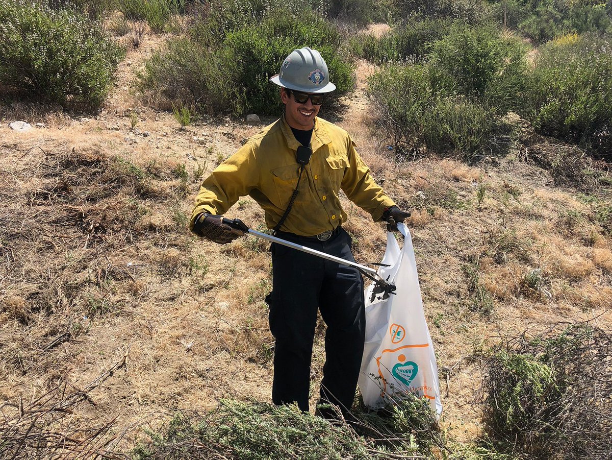 This week #SBCoFD hand crews are performing a fuel modification project on I-15 from I-215 & SR-138 in the #CajonPass. GOAL: Reduce the size of new fire starts. A 4' rattlesnake reminds us to watch our step as it gets warm. @SanBernardinoNF @CALFIREBDU @Caltrans8