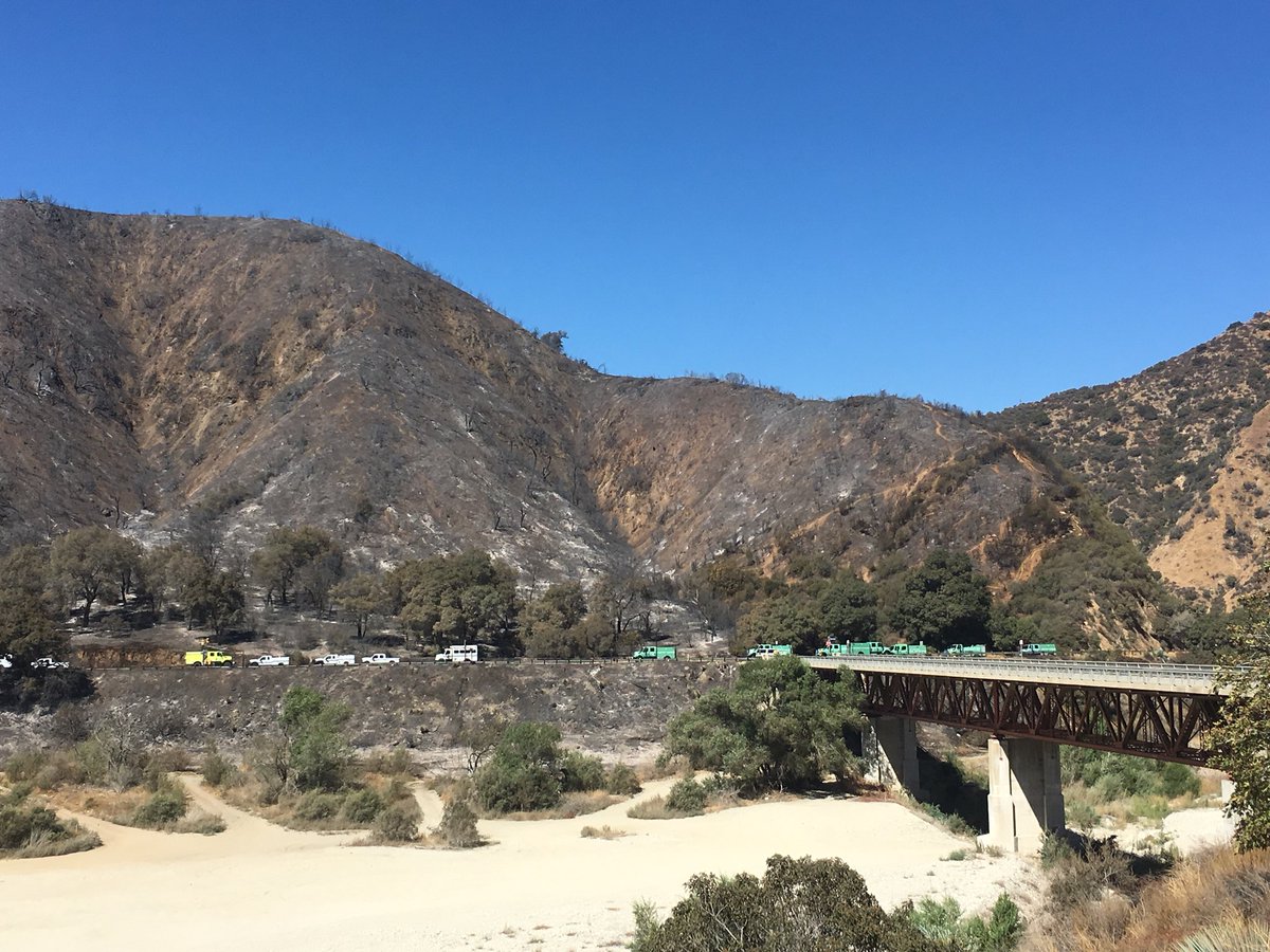 The Fork Fire was reported at 11:58 am September 9, 2018 on Highway 39 at the junction of East Fork Road. The Fire is currently 166 acres 0% contained. Forest Service assisted by LA County Fire Dept. CAL FIRE, Orange County Authority, Santa Barbara County and other fire service agencies along with CHP, Cal Trans and So Cal Edison. The fire progression was stopped utilizing helicopters, air tankers, dozers, hand crews and engines. U.S. Forest Service Law Enforcement assisted by LA County Sheriff's, evacuated hundreds of recreational visitors.