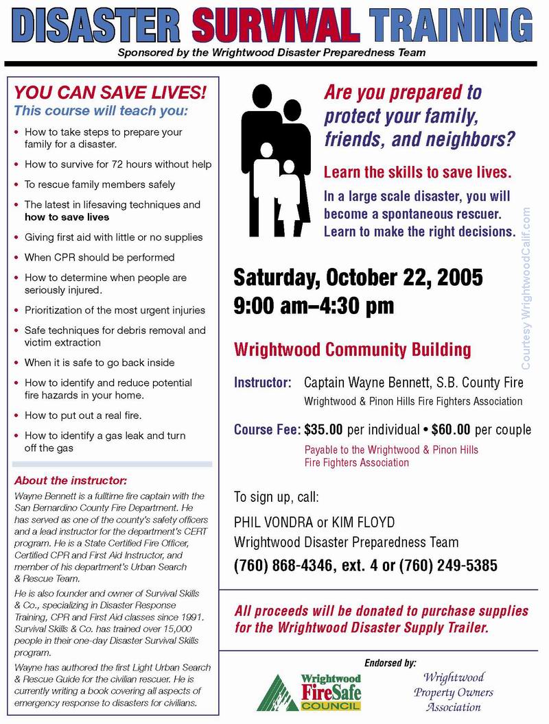 Re: Citizen Disaster Survival Training