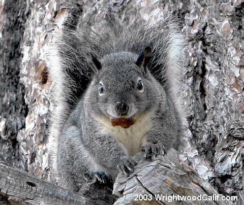 I've always liked the look of the gray squirrel with the bushy tails.  In Burbank we have a lot of squirrels but they are red squirrels and they don't have the nice bushy tails that the Wrightwood squirrels have.