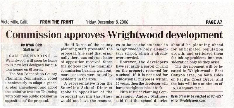 I would say that was an incredibly astute observation! You expected something different because a handful of people said they didn't want any more houses in Wrightwood?