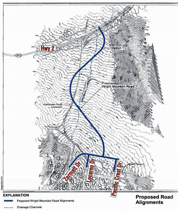 Locarno Drive, Pacific Crest Drive and Zermatt Drive will all join into the new Wright Mountain Road.