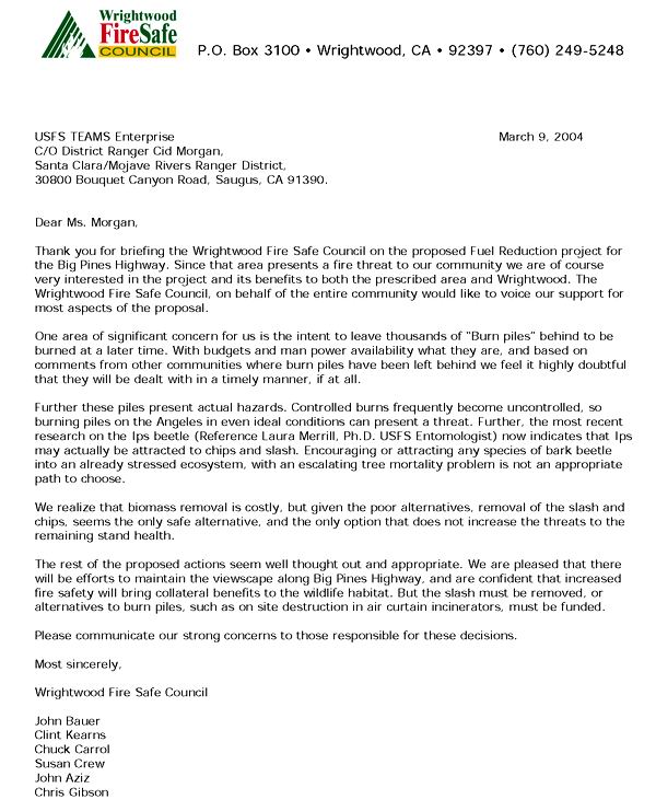 Cid's push for a Big Pines Fuel Reduction started in 2003. By early 2004 a proposed plan, map and scoping letter had been issued. Cid met with the Big Pines Camping Association and Wrightwood Fire Safe Council on numerous occasions explaining the need for this fuel modification project.