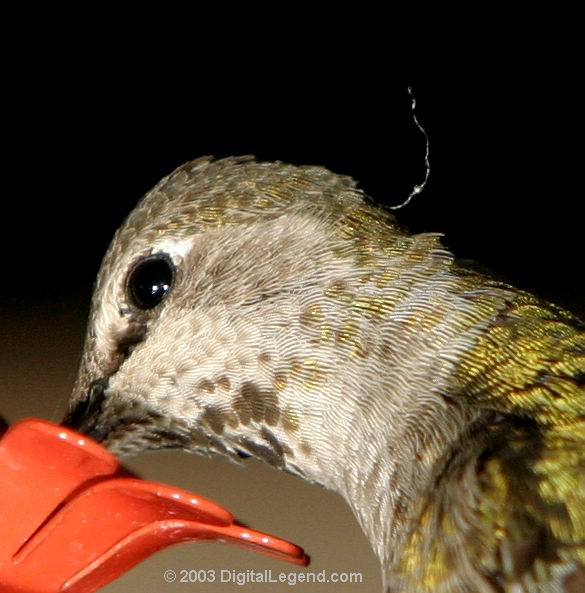 Notice the spider web sticking out the backside of this Anna's Hummingbird head.